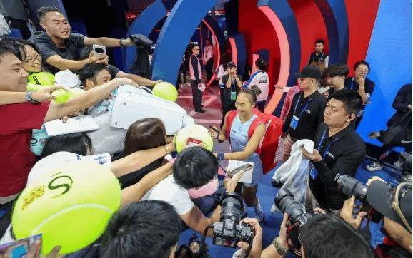 9月27日,在北京举行的2025中国网球公开赛女单第二轮与哥伦比亚选手阿朗戈的比赛后,中国选手郑钦文(中)与观众互动。新华社记者 白雪飞 摄