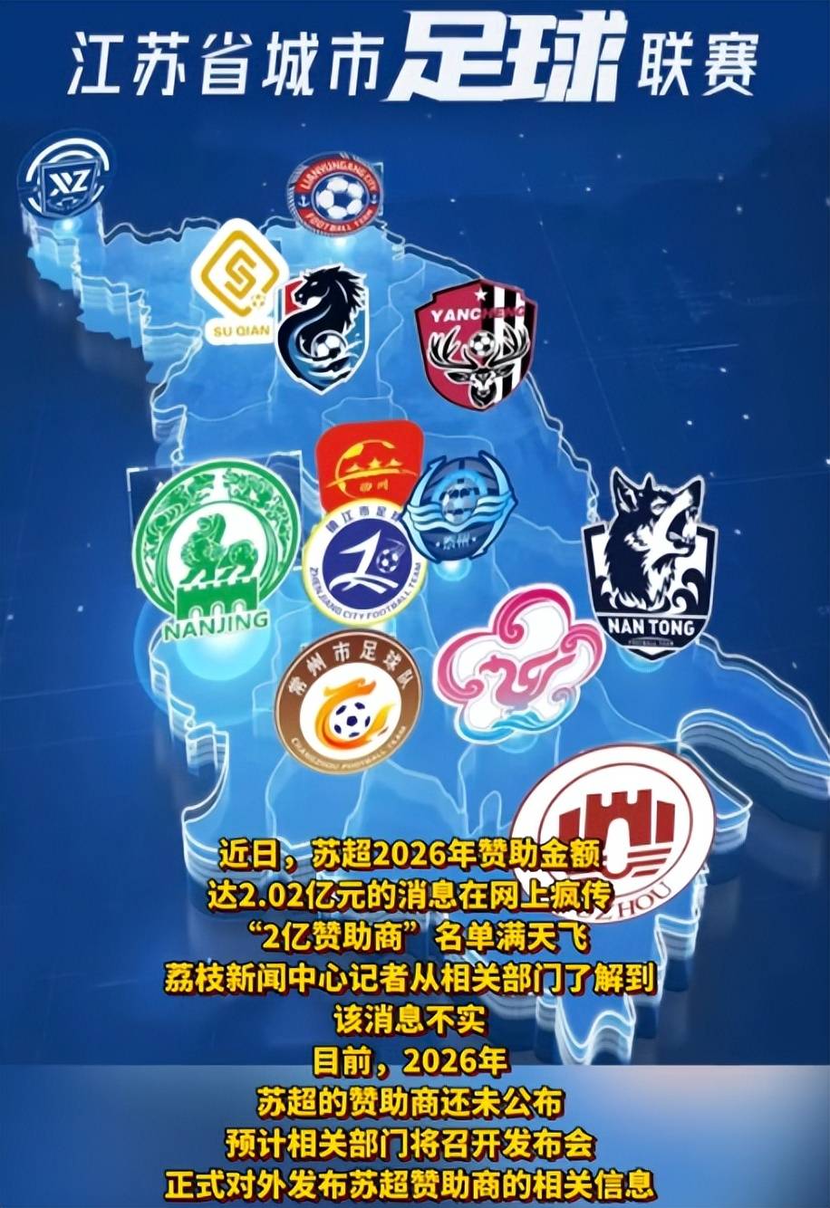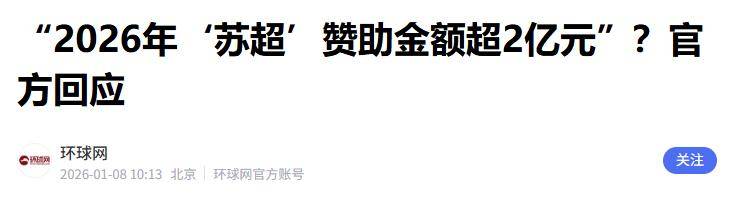 最近一段时间网上疯传“2026赛季苏超赞助费达2.02亿”,还列了一堆所谓的赞助名单。