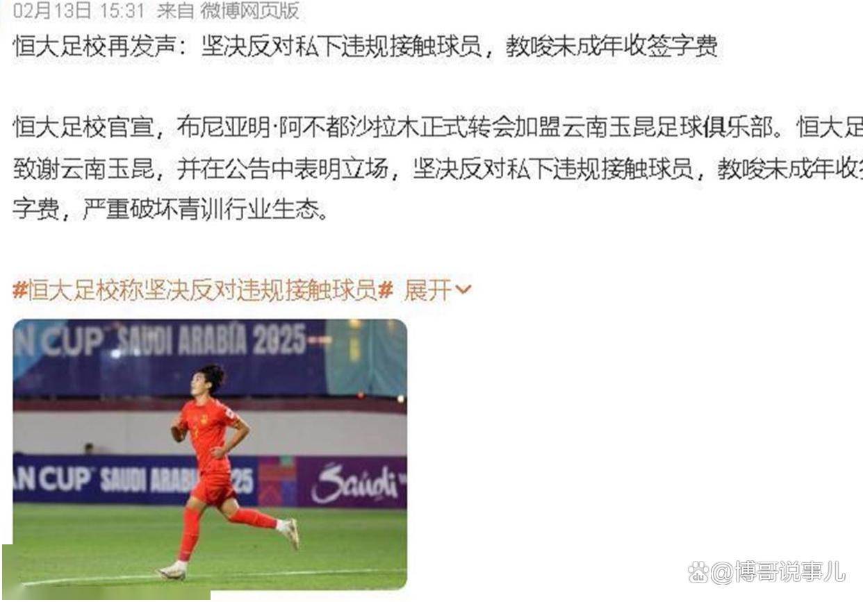 如今角色反转,从捍卫者变成了被指控的违规方。 另一边,未满18岁的布尼亚明转会云南玉昆,则被行业视为“范本”。 云南玉昆与恒大足校通过正规渠道协商,支付了总计100万元的费用,其中青训补偿部分超过40万元,远高于足协标准,并且双方约定了未来的二次转会分成。