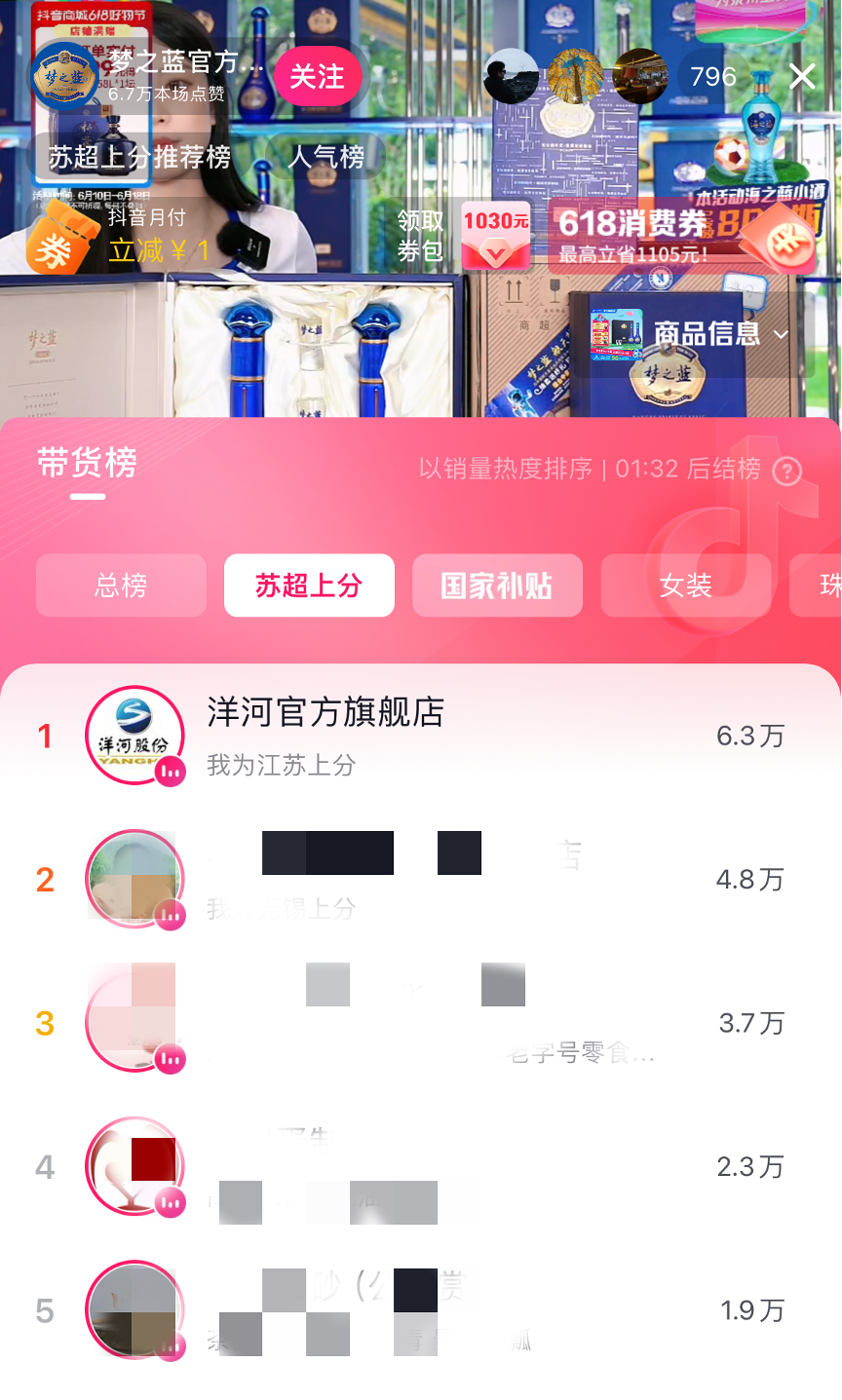 助力家乡,为足球喝彩。“每进一球,就送小酒”,抖音带货榜中,洋河股份通过电商平台面向球迷发起进球互动。洋河官方旗舰店成功登顶全国“苏超上分”榜TOP1,用实实在在的福利助力苏超联赛,为江苏上分!